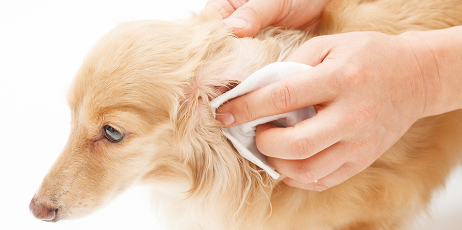耳の健康状態をチェックすると同時に犬種によっては耳に生える毛を抜きます。イヤーローションで耳の中を拭きます。